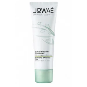 Jowaé Fluide Matifiant Équilibrant 40 ml est un soin anti-brillance pour peaux mixtes à grasses à base de Lumiphénols antioxydants et de Lotus Sacré.
