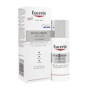 Eucerin Hyaluron-Filler + 3x Effect Soin de Jour SPF15 est une crème anti-ride pour les peaux normales à mixtes. La perte de volume et l'apparition de rides sont les conséquences d'une baisse de la teneur naturelle en acide hyaluronique dans la peau. En effet, avec l'âge, la teneur en acide hyaluronique diminue.